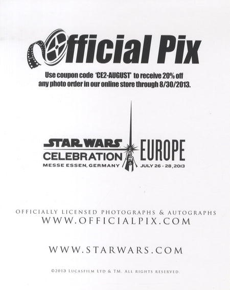An Official Pix (OPX) Star Wars Celebration Europe II 2013 8"x10" blank photocard. Please note that the number on the picture is a watermark and is not on the actual photo.